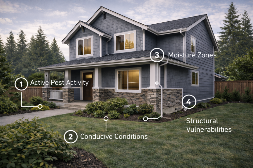 Western Washington does not experience long freeze periods that eliminate pest populations. Ants, rodents, and spiders remain active throughout much of the year, especially in insulated structures.